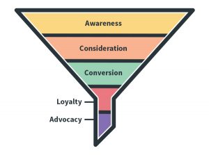 The idea of content strategy comes from the traditional marketing funnel where your pool of potential customers grows smaller as it moves toward its first transaction with your business.