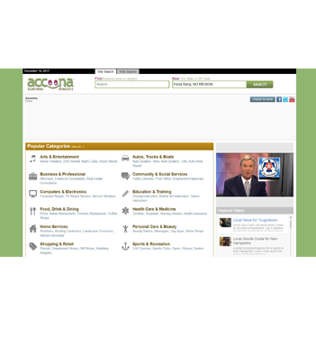 Accoona was an internet company having offices in Jersey City, New Jersey and Shanghai, China. Their main product was a search engine that claimed to use artificial intelligence to better understand searches. In addition to traditional searches, Accoona.com allows business profile searches, and its signature “SuperTarget” feature. Whether you’re searching for a trendy restaurant, or a mechanic to service your car, Accoona.com can help you find the right businesses to cater to your needs. Accoona.com services all the major cities in the United States.