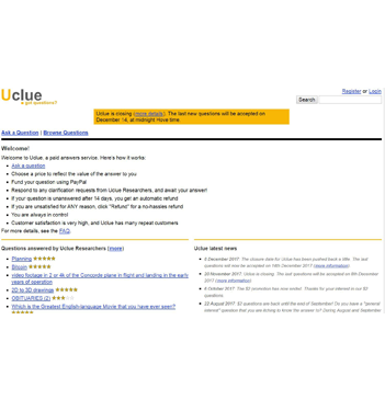 Uclue is a fee-based research service and question-answer search engine. Researchers are located in North America, South America, Europe, Australia, Japan, and the Philippines. Thanks to this international diversity, Uclue is able to provide research and translation in English, German, Spanish, Tagalog, and conversational French. Over 1000 people from 6 continents have registered at Uclue as both clients and commentators. Uclue’s researchers can provide answers spanning a broad and eclectic array of topics. Categories include Business, Genealogy, all the Sciences, Technology, Computer/Software Help, Health, and the Arts. Questions range from high-level business research to locating equipment.