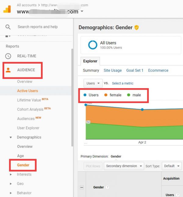 Want to know what your audience age distribution? Are they mostly male or female? You will find audience ages and gender by navigating to Audience >> Demographics >> Overview.