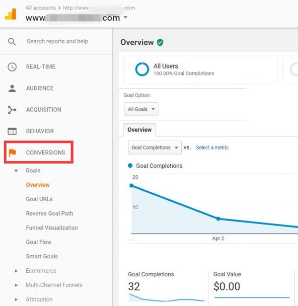 For viewing conversion rates in Google Analytics, you must have already set up goals. You can either see the conversion rate of individual goal or by selecting all goals.